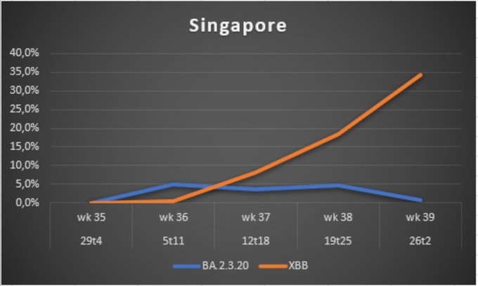 The worlds first wave of the recombinant SARS-CoV-2 variant XBB has apparently begun in Singapore. XBB is another Omicron sub-variant.
